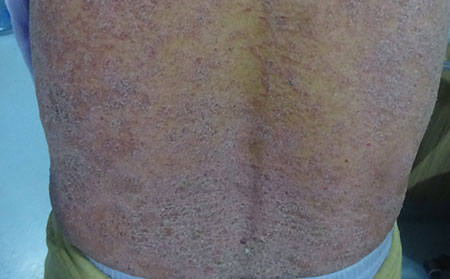 发展期。这是一开始的时期,也是治疗较可以的时期,这一阶段的特点是皮疹多呈点滴状,色泽鲜红而发展迅速,鳞屑较多,易脱落,多有瘙痒感觉。皮肤受到外伤后,可继发为牛皮癣皮损。